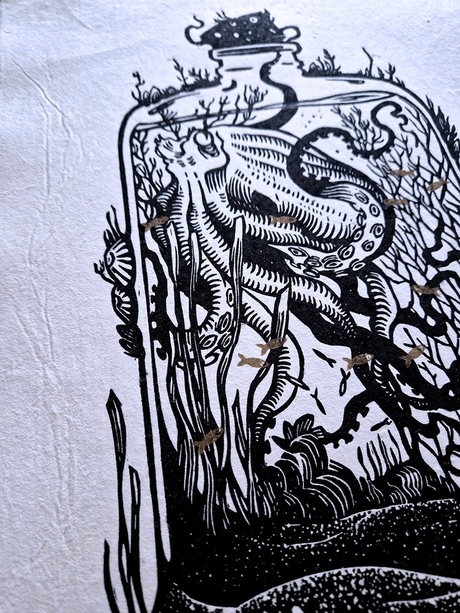 Une petit linogravure A5 est offerte avec ce poulpe !