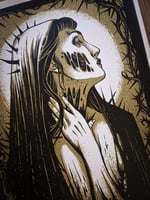 Une sérigraphie en deux couleurs, noir et doré sur papier blanc, format A3