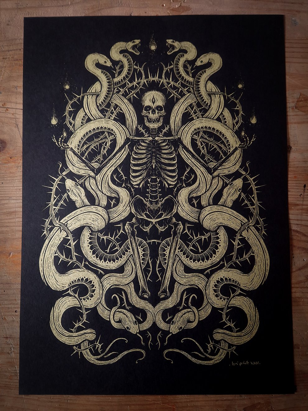 Sérigraphie "Squelettes et serpents"